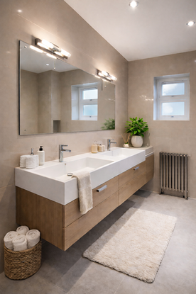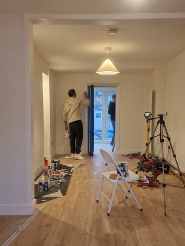 This project transformed a three-bedroom first-floor apartment from a dated, fragmented interior into a warm and contemporary home. Stripped back to the brickwork, the layout was fully reconfigured to improve circulation and create more functional entrance, kitchen, living, and bathroom spaces, alongside a complete upgrade of the HVAC and plumbing systems.